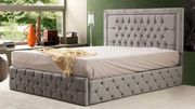 Meublez votre chambre à coucher avec le cadre de lit capitonné 2 places Roma. Conçu avec du tissu velours votre cadre de lit capitonné s’intègre parfaitement dans tout type d’intérieur. Ses trois dimensions 140x190, 160x200 et 180x200 vous garantissent l’espace suffisant pour passer une douce et agréable nuit. Selon votre choix, votre cadre de lit peut être vendu avec ou sans sommier, avec ou sans matelas. Sa structure robuste lui assure une très grande longévité. Avec votre cadre de lit capitonné 2 places, votre intérieur s’orne d’une allure digne et royale.
